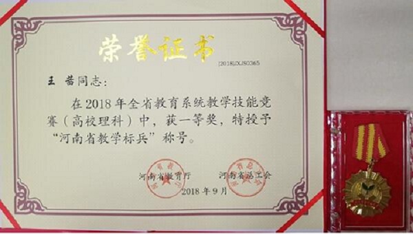 她说:“每次站在讲台上,自豪感便由然而生,上课能激起我的无限热情!”功夫不负有心人,她用爱心与热情,获得了2018年全省教育系统教学技能竞赛一等奖、“河南省教学标兵”称号!