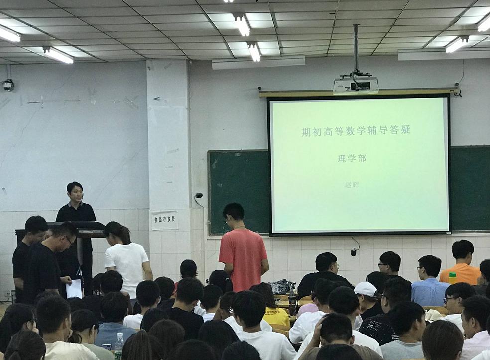 9月11日晚,有200多个座位E309座无虚席,英才校区开设数学课的学生,特别是17级本科各专业的同学齐聚一堂。有的认为自己前期知识不够扎实会影响后面学习,有的想以此为奋战考研的起点,还有的要系统复习通过补考,针对这些想法,赵辉老师首先介绍了高等数学的学习方法和对专业课的作用,然后对高等数学内容进行了系统总结、重点归纳和难题详解。集体复习后,他还带领老师们针对同学们个人所提问题进行耐心解答和一对一辅导。
