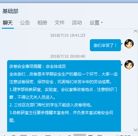 安全生产,责任重大,全体师生忙碌了一个学期,williamhill英国党总支高度重视教学的最后一个环节——改卷期间的安全与稳定工作。总支利用会议、网络、电话沟通、当面提醒等多种方式教育教工,认真对待期末改卷工作,不得有麻痹思想和侥幸心理。要保证改卷公平、录分细心、核查认真、试卷保密等细节工作,特别要求三校区各流水改卷地点注意锁好门窗,不得让无关人员进入等。