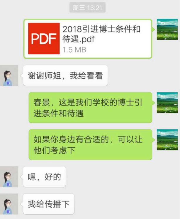 2.全员参与招博工作,一是每人将学校的招聘材料发至同学群中(要求截屏),做到有的放矢,二是利用春节走访亲友、同学联系等方式,争取招博。