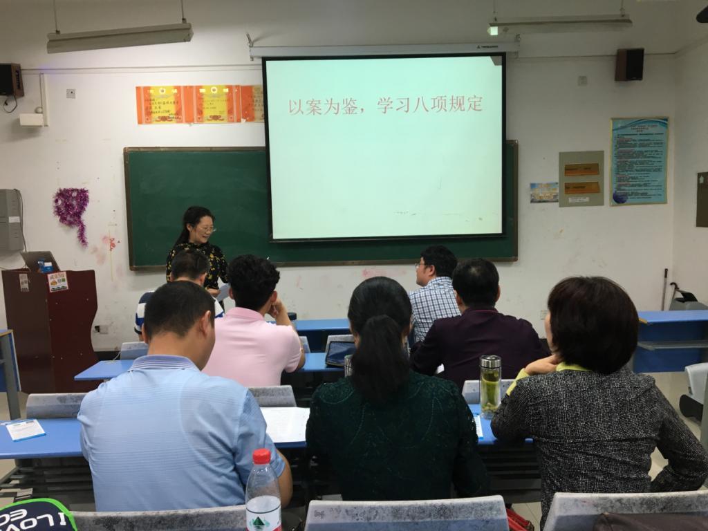 会议由赵白云书记主持,部门科级以上干部、支部书记、党小组长以及部分教师代表参加。会上,赵白云书记首先通报了我校纪委在校园内网转载的《各级纪检监察机关查处10起违反中央八项规定精神问题》,然后以案为鉴,带领大家原文再次学习了八项规定全部内容。随后大家就所通报的案例情况,和如何贯彻从严治党,党员干部如何严格执行八项规定展开了讨论。