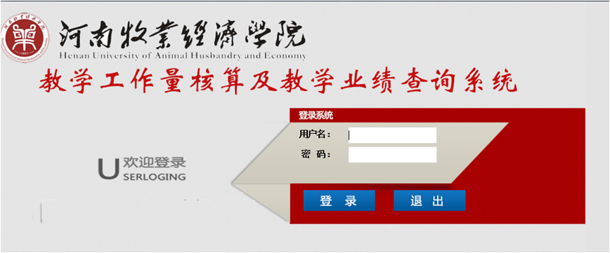 教师个人通过校内IP登录教学工作量核算及教学业绩查询系统(见下图;网址:/index.html推荐使用IE浏览器,用户名:教师个人工号 初始密码:教师个人工号),查询本人2019年度教学工作量。