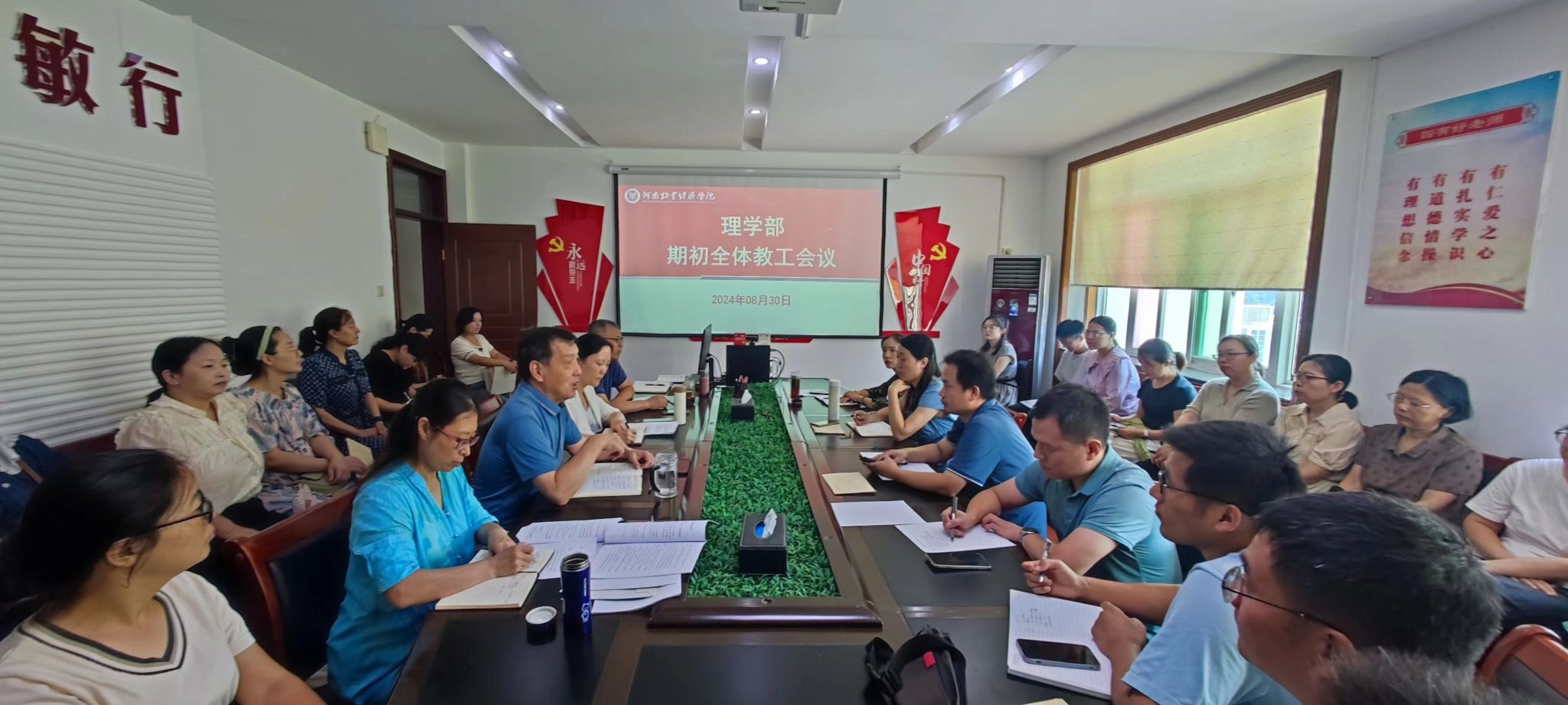 副主任林大志传达了新学期教学管理工作会议精神,并对期初教学安排、科研工作要求、教学大纲修订要求、数学建模竞赛、教学创新大赛、新进教师培训、试卷抽查等工作进行了具体安排。副主任张荷丽详细解读了学校最新的职称评审办法及其修改说明,并对各校区实验室安全工作及日常管理等进行了安排。