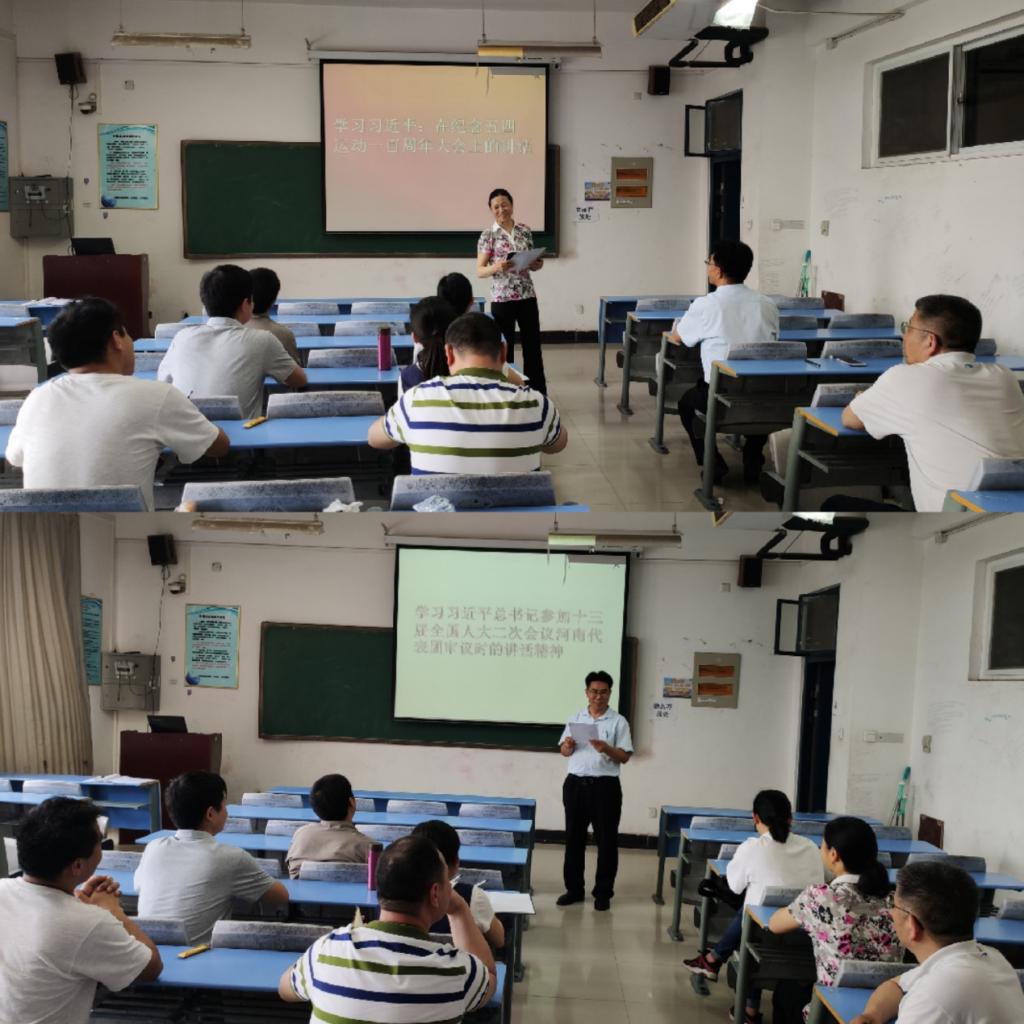 为深入学习贯彻习近平新时代中国特色社会主义思想和党的十九大精神, 5月16日下午北龙支部在龙子湖2号楼A406召开会议,专题学习习近平总书记在纪念五四运动100周年大会上的重要讲话。学习由支部书记陆宜清主持,支部所有党员干部和老师参加,党小组长张思胜、陈晓培等带头积极发言。大家认识到,五四运动不仅开启了新民主主义的政治革命,也开启了新民主主义的文化革命,激发了中国人民的文化自觉意识,为中华文化的创造性转化、创新性发展奠立了基础。全体党员干部表示要认真贯彻落实习近平总书记五四青年节重要讲话精神,努力掌握科技文化知识和专业技能,努力提高人文素养,为祖国的繁荣昌盛贡献自己的力量!