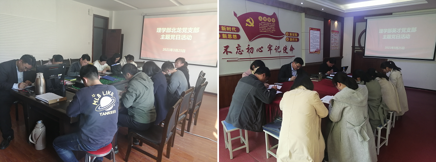 为深入开展党史学习教育,根据校党委组织部《关于开展2021年3月份党支部主题党日活动的通知》(校组〔2021〕2号)和《williamhill英国党总支关于开展党史学习教育的实施方案》安排,3月25日下午,williamhill英国北龙党支部和英才党支部在英才校区原行政楼303和301组织开展了主题党日活动,各支部全体党员参加了活动。活动分别由支部书记陆宜清和赵辉主持。