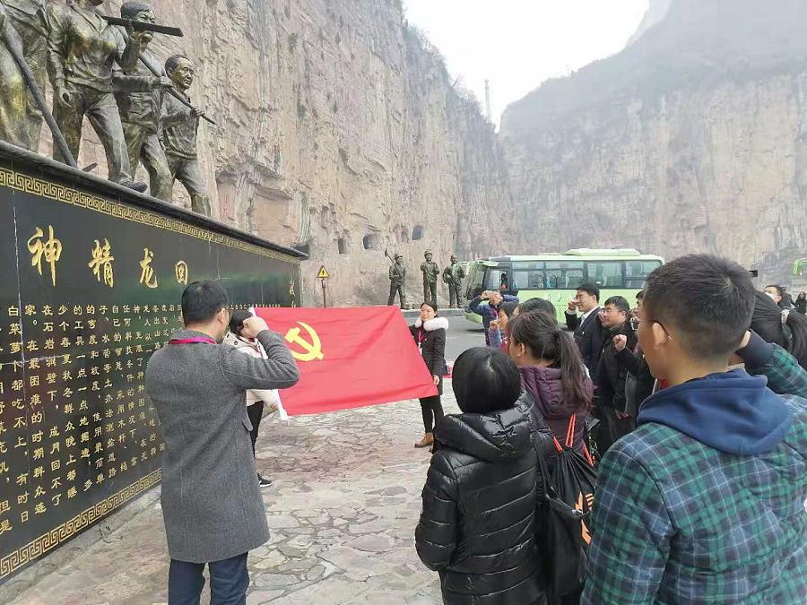 本次教育活动采用场馆教学、现场教学、体验教学相结合的形式,先后到新乡县刘庄村和辉县市回龙村现场教学点,深入学习以史来贺、张荣锁为代表的先进群体事迹,深刻领悟他们的精神境界、道德风范、时代品质。在刘庄展览馆,大家在一幅幅历史图片、一件件珍贵实物前久久驻足观看,并通过认真聆听工作人员的生动讲解,无一不被史来贺一心为民、无私奉献的公仆形象深深感动;在现场教学环节,大家参观了刘庄新村、史来贺故居,真切感受到了刘庄村翻天覆地的发展与变化。随后,大家来到辉县市上八里镇回龙村,参观了回龙精神展览室,并集中观看了纪录片《太行新愚公—张荣锁》,张荣锁书记心系百姓、艰苦创业、百折不饶、无私奉献的回龙精神深深打动了在场的每一个人;在回龙雕像前,全体党员同志重温入党誓词,进行了庄严宣誓,用回龙精神鞭策激励自己;之后进行的体验教学环节,大家徒步穿越了回龙村挂壁公路,360度感受着“劈山凿洞,云端筑路”的回龙巨变和张荣锁“当代愚公,造福乡亲”的赤子情怀。