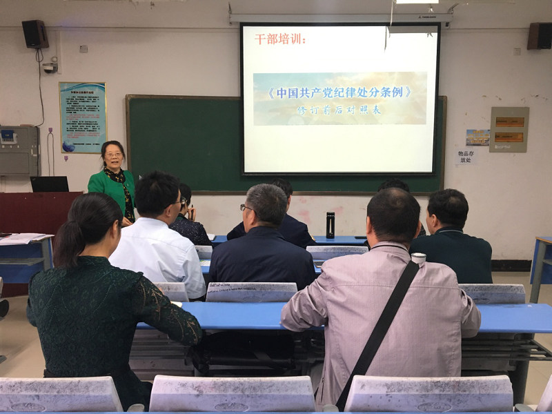 本轮干部培训对象为部门科级以上干部、支部书记、党小组长,旨在提高部门核心队伍的思想认识水平和业务水平,推动部门党建、教学等工作全面、深入地开展。9月27日下午进行的是廉洁自律专题教育,由总支书记赵白云负责和领学。