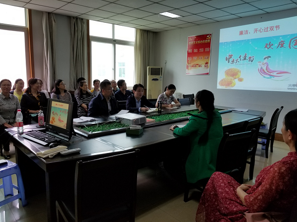 会上,赵白云书记首先传达了《关于中秋、国庆期间持之以恒正风肃纪确保廉洁过节的通知》(校纪【2018】6号)精神,并根据通知精神教育党员和全体教工,要把思想和行动统一到贯彻党的十九大精神和学校发展上来。她要求大家在双节期间,一定要做到“不麻痹,不大意,管好手,管好嘴”!结合近期一些案例,她提醒大家要认识到,“不踩红线,方能高兴过节”!