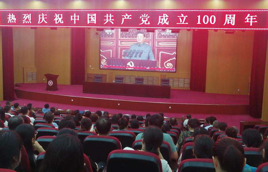 7月1日上午,庆祝中国共产党成立100周年大会在北京天安门广场隆重举行。按照学校统一安排,williamhill英国组织全体教师,在英才校区学术报告厅集体观看了大会直播。