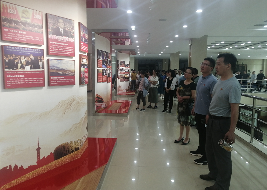 直播结束后,全体教师前往英才校区图书馆二楼大厅,参观了“庆祝中国共产党成立100周年”主题展览。本次主题展览共分为中国共产党在新民主主义革命时期、社会主义革命和建设时期、改革开放新时期和中国特色社会主义新时代四大板块,图文并茂、生动形象地展示了中国共产党的百年光辉历程。