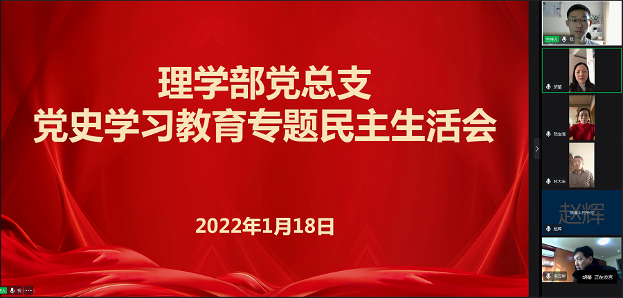 根据学校党委《关于开好党史学习教育专题民主生活会的通知》精神和要求,1月18日上午,williamhill英国党总支通过钉钉视频形式召开了专题民主生活会。领导班子全体成员和总支委员参加会议,会议由党总支书记胡蕾主持。