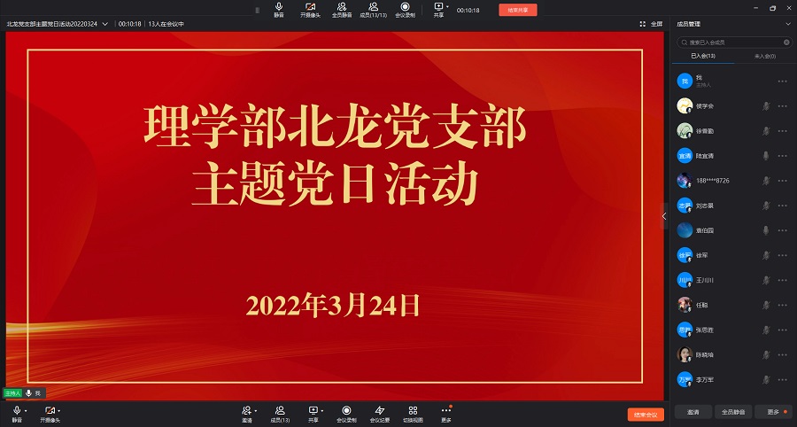 3月24日下午,williamhill英国北龙党支部和英才支部通过钉钉视频会议方式,分别在线上开展了3月份主题党日活动,各支部全体党员参加活动。主题党日活动分集中学习和线上承诺二个阶段进行,支部书记陆宜清和赵辉分别支持会议。