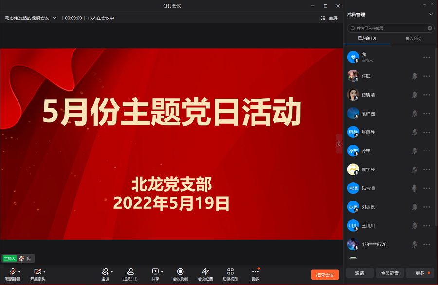 5月19日下午,williamhill英国北龙党支部利用钉钉视频会议开展了5月份主题党日活动,党支部全体党员参加了会议。会议由党支部书记陆宜清主持。