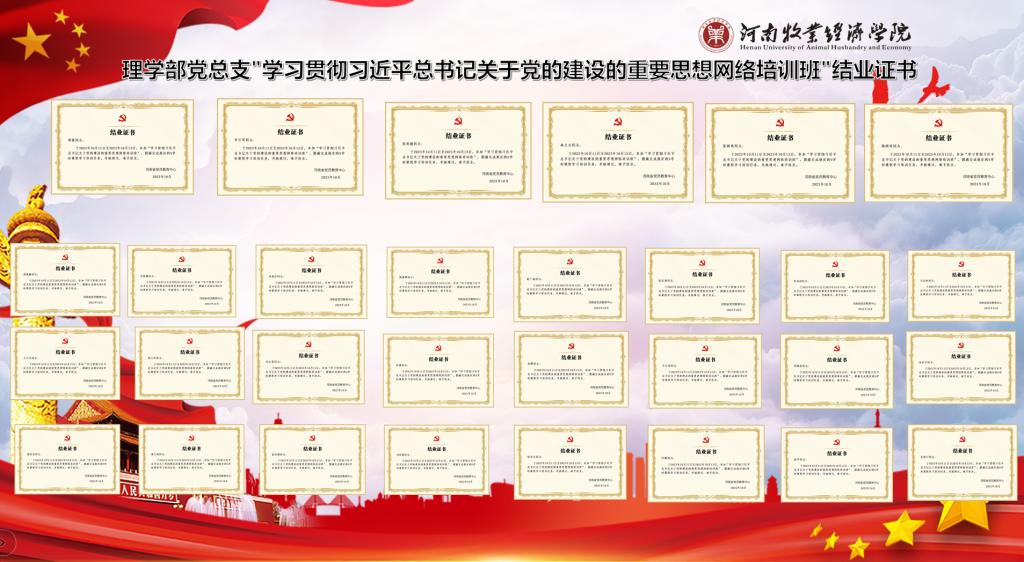 根据学校《关于组织参加河南党员教育“云课堂”(学习贯彻习近平总书记关于党的建设的重要思想网络培训班)的通知》统一安排,williamhill英国党总支高度重视,认真组织,统筹安排培训工作,保证了培训人员、时间、内容、效果的落实。全体党员干部于10月16日上午圆满完成各项学习内容,并考核合格取得结业证书。