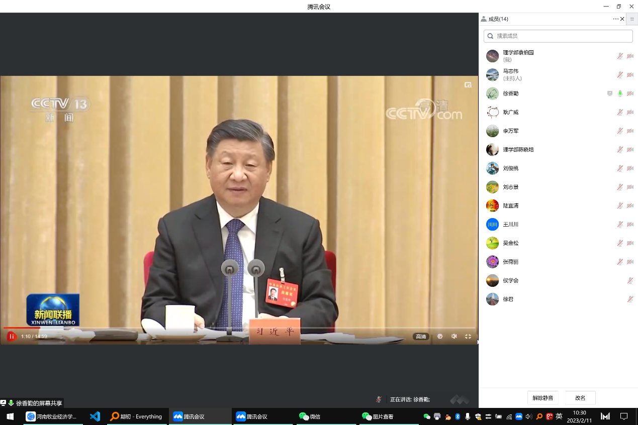 紧接着,数学党小组组长徐香勤领学了《习近平总书记在中央经济工作会议和中央农村工作会议上的重要讲话精神》,带领大家观看了有关视频。两个中央会议是党的二十大之后召开的十分重要的会议,习近平总书记在两个会议上的重要讲话,高屋建瓴、思想深邃、内涵丰富,是对严峻挑战下做好经济工作和“三农”工作规律性认识的不断升华,既是思想指引、又是行动指南,是指导当前和今后一个时期经济工作和“三农”工作的纲领性文献。