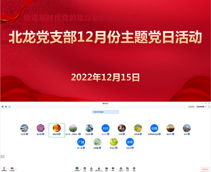 为深入学习贯彻党的二十大精神,深刻领会党的二十大报告关于“实施科教兴国战略,强化现代化建设人才支撑”的重大战略部署,进一步凝聚科教人才合力,12月15日下午,williamhill英国北龙党支部以腾讯会议的形式组织开展“不忘初心履使命,砥砺奋进新征程”主题党日活动。本次主题党日活动由党支部书记陆宜清主持,全体党员参加。
