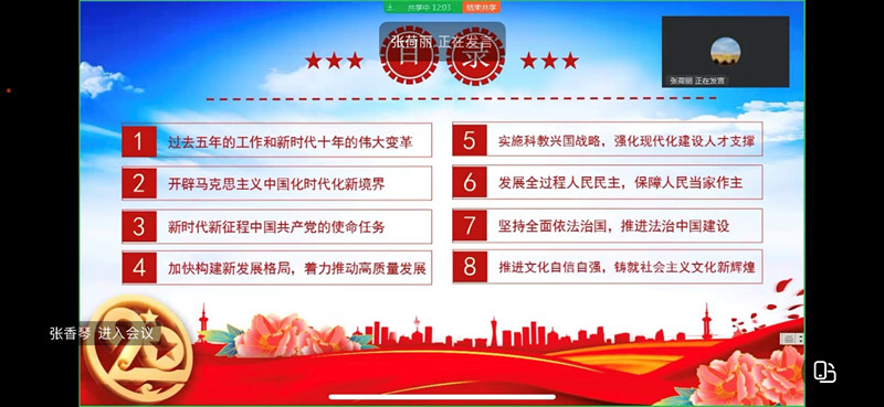 主任李万军带领大家认真学习了《习近平总书记在二十届中共中央政治局常委同中外记者见面时的讲话》精神,向世界展示了党的道路自信、理论自信、制度自信、文化自信,彰显了中国共产党立党为公、执政为民的执政理念,充分证明了党是无愧于中国特色社会主义事业的坚强领导核心。副主任张荷丽对《习近平总书记在中国共产党第二十次全国代表大会上的报告》进行了深入解读,报告提出了党的二十大主题,为新时代新征程党和国家事业发展、实现第二个百年奋斗目标指明了前进方向、确立了行动指南。