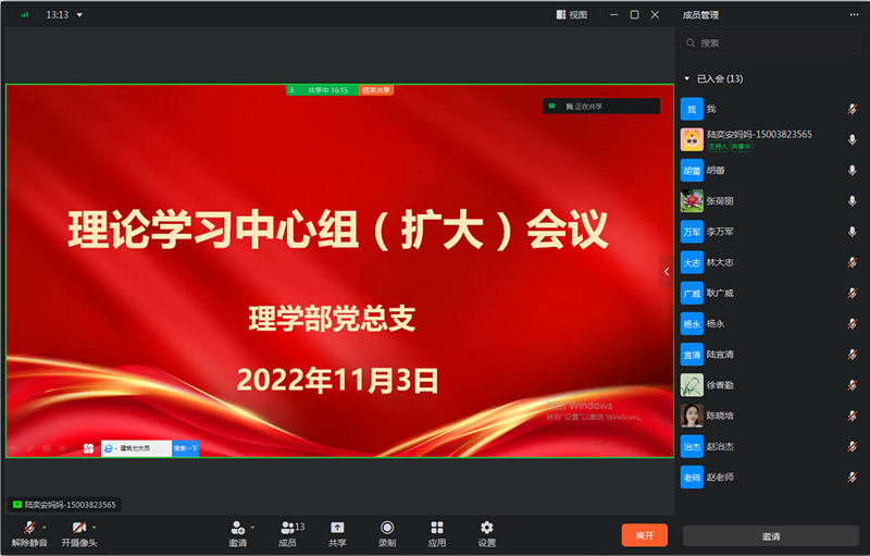 与会人员集体观看了习近平总书记考察红旗渠纪实片——《定叫山河换新装》,逐一发言畅谈学习感想。主任李万军带大家一起回顾了延安革命时期“南泥湾”大生产运动和徐海东将军借给中央红军5000大洋的感人历史,使大家更加深刻理解了延安精神中的自力更生、艰苦奋斗,更加深刻认识到团结一心、坚定信念的重要意义。李万军指出,党的二十大描绘的宏伟蓝图要靠不懈奋斗才能实现,当前学校还处于疫情防控的关键时期,线上教学工作面临诸多困难,与会党员干部要传承好发扬好老一辈革命家和共产党人留下的光荣传统优良作风,保持“越是艰险越向前”的英雄气概,保持“敢教日月换新天”的昂扬斗志,团结奋斗、敢于胜利,在规范线上教学、开展提升线上教学质量上多思考多实践,用党的二十大精神指引推动部门各项工作。