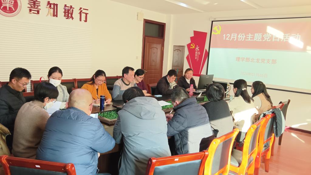 1月5日下午,williamhill英国北龙党支部在英才校区综合楼303会议室开展了2023年12月份主题党日活动,党支部全体党员参加,会议由党支部书记刘志景主持。