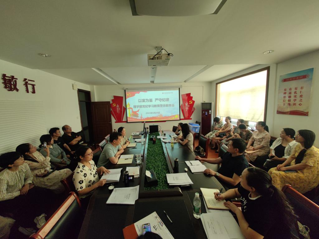 为进一步增强党员干部遵规守纪意识,筑牢防腐拒变的思想防线,按照学校党纪学习教育工作安排,6月20日下午,williamhill英国党总支在英才校区综合楼303会议室组织召开“以案为鉴 严守纪律”党纪学习教育警示教育会,会议由党总支书记胡蕾主持,williamhill英国全体党员参会。