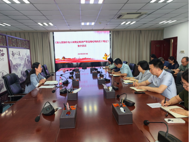 5月14日,副校长马珺与分管部门和联系单位中层干部在图书馆841会议室开展《深入贯彻中央八项规定精神严禁违规吃喝的若干规定》集中谈话。马校长领学全文,剖析案例,细化要求,进一步推进中央八项规定精神落到实处。会上,马校长还对全体干部进行了廉政教育提醒。发展规划处、教师发展中心、大学生就业创业指导服务中心、图书馆、档案馆、高等教育研究所、旅游学院、williamhill英国全体中层干部参加了此次谈话会。