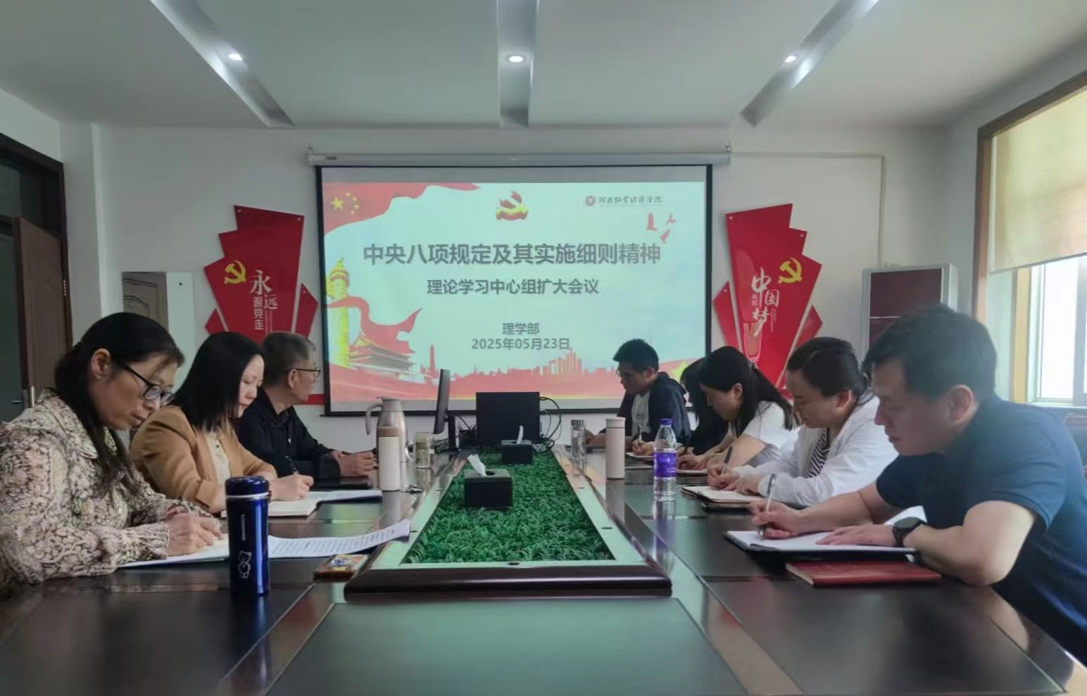 与会同志集体学习了教育领域违反中央八项规定精神相关典型案例,共同观看了新华网独家解读中央八项规定精神《从“一根灯芯”到“八项规定”》《一顿饭背后的作风对决》《这样的生活方式,要远离》视频。结合典型案例和学习视频,大家进行了深入剖析和交流研讨,一致表示,作为教育工作者和党员干部,要始终牢记“为党育人、为国育才”的初心使命,树立忠诚党的教育事业、清正廉洁、克己奉公、担当作为的良好形象,为培养担当民族复兴大任的时代新人营造风清气正的育人环境。