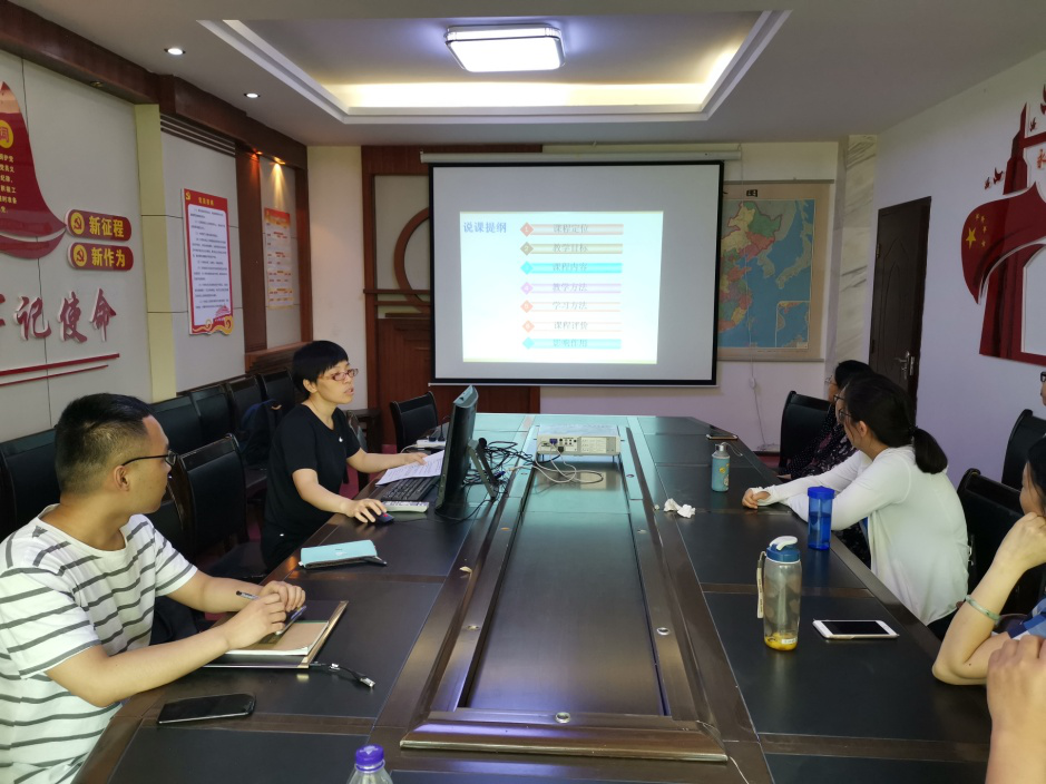 说课由赵辉带头进行。赵辉本学期主讲《概率论与数理统计》,赵老师从课程定位、教学内容、教学设计三个方面进行说课,通过三个方面的说课,介绍了这门课程的重要作用以及学好概率论与数理统计对促进专业课学习的帮助。然后冯艳、朱晓宁、郭晓飞等依次进行。冯老师从课程定位、教学目标、课程内容、教学方法、学习方法、课程评价、影响作用七个方面对《高等数学》这门课程进行说课,通过七个方面的介绍,阐述了《高等数学》这门课程对学生尤其是本科生的重要意义。朱晓宁老师从问题引入的角度对《高等数学》课程进行了说课,朱老师从为什么学习微积分、微积分学什么、怎么学好微积分三个问题的提出,引出学习微积分的重要性,进而从课程性质和定位、整体架构、内容、教学组织方式、学法、评价方法等几个方面详细对《高等数学》课程进行说课。大学物理教研室新引进的博士郭小飞从《大学物理》课程定位、教学目标、课程内容设计、学情分析、教学方法与教学手段、教学评价与考核方式、应对策略等七个方面进行说课,郭博士不仅对教学内容进行分析,而且还研究了我校本科学生对大学物理这门课的认知,强调了大学物理与高等数学之间的关系,并指出了学生们在学习这门课的不足以及今后课程的改革方向。