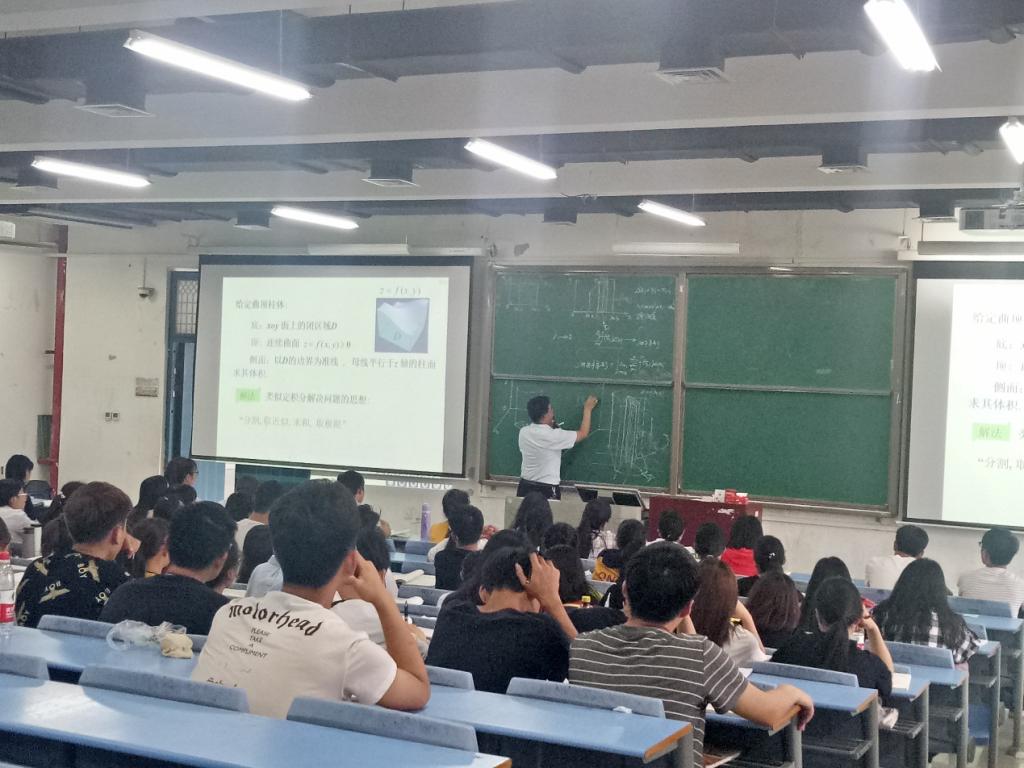 张思胜老师讲解的题目是多元函数重积分的概念与性质,张老师通过日常实例,前期课程的复习,自然顺畅地引入新课,通过课堂板书和PPT的有效结合,深入浅出地把复杂的概念讲解的清清楚楚,整个课堂活泼有趣,师生互动良好,教学效果优异,给大家呈现了一堂精彩的教学观摩课,让同学们深受启迪的同时也深深感染了在座的每一位老师。