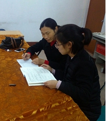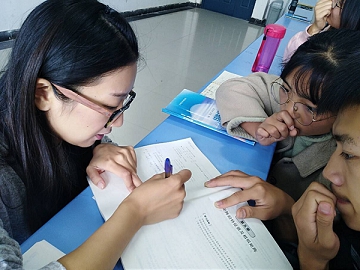 刘俊桃 王茜亲切认真(像两位姐姐认真辅导弟弟妹妹)