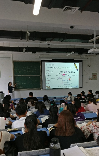 刘俊桃老师授课的班级是17食安02、03、04班,讲授课程为《分析化学》,她本次授课的主要内容是多元酸碱的滴定,重点讲述了多元酸、碱能否直接滴定的判断依据以及在滴定过程中如何选择指示剂。在讲解过程中,刘老师运用实例,将理论和实验结合在一起,使复杂的理论简单化,使学生获得了直观的认识。刘老师注重运用启发式教学,将知识灵活迁移,对学生自主学生进行引导,课堂互动效果良好。