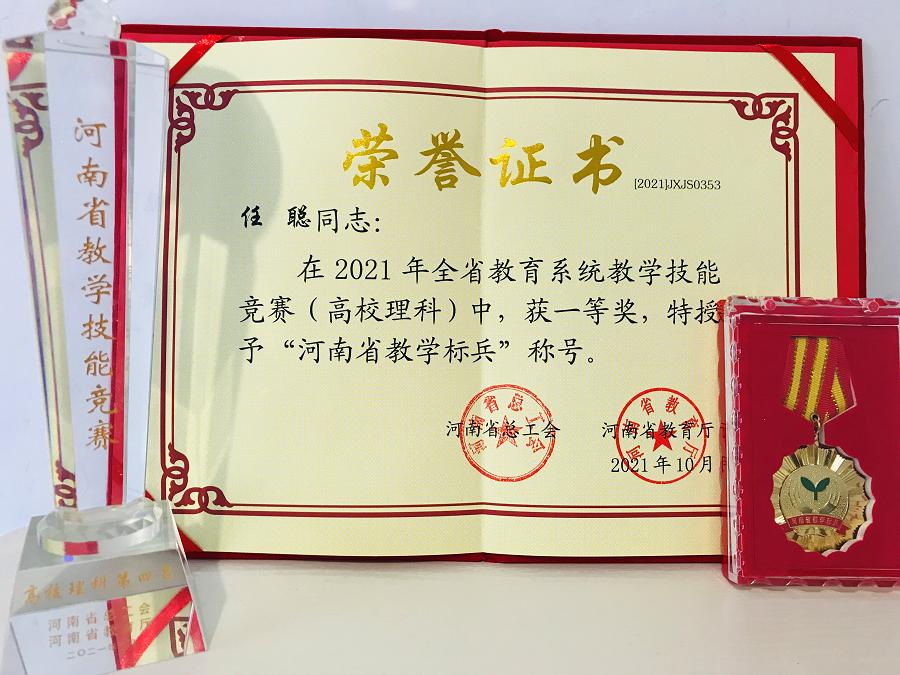 日前,从河南省总工会、河南省教育厅联合下发的《关于表彰2021年全省教学技能竞赛获奖单位和个人的决定》(豫工文〔2021〕89号)中获悉,williamhill英国教师任聪在2021年全省教学技能竞赛中以理科第四名的优异成绩斩获理科组一等奖,同时被省总工会、省教育厅授予“河南省教学标兵”荣誉称号。
