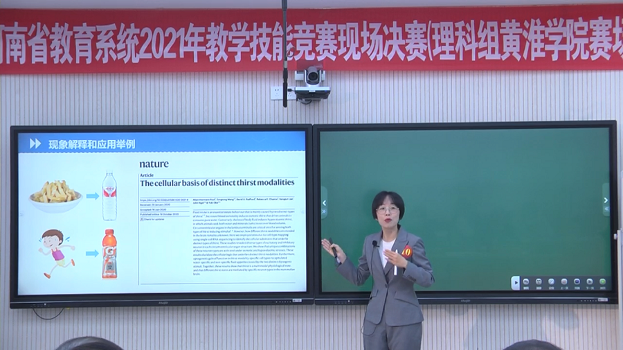 2021年度教学技能竞赛启动以来,williamhill英国高度重视,成立了教学技能竞赛领导小组,制定了实施方案,广泛动员、精心选拔、认真打磨,积极推荐并指导优秀教师参加学校比赛。在6月举办的我校2021年度教师教学技能竞赛上,任聪老师以总分第一名的成绩斩获理工农科组一等奖,并被推送参加全省教学技能竞赛。之后williamhill英国又组织对任聪老师的参赛内容进行多次指导和打磨。经过省竞赛评审委员会严格评审,任聪老师成功晋级全省理科前20名,并于10月10日~12日赴驻马店黄淮学院参加了全省教学技能竞赛现场总决赛。现场总决赛上,任聪老师抽到(五选一)的竞赛内容为《稀溶液渗透压》,通过20分钟的精彩授课和5分钟的教学阐释,最终获得全省大学理科第四名的优异成绩,展示了我校青年教师扎实的学科功底、娴熟的教学技能和良好的精神风貌,为学校和部门赢得了荣誉。