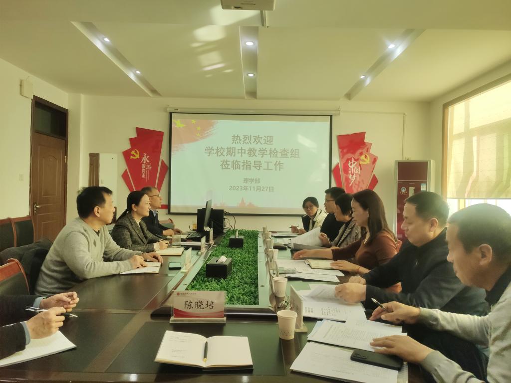 根据学校《关于开展2023-2024学年第一学期期中教学检查的通知》工作安排,11月27日下午,教学质量监控与评估办公室主任马海燕、信息工程学院院长连卫民、文法学院院长李国英、经济与贸易学院院长李光、国际教育学院院长胡晓波、评估科科长陈英一行莅临williamhill英国开展期中教学检查工作。williamhill英国党总支书记胡蕾,主任李万军,副主任林大志,教学科研办公室主任陈晓培,化学教研室主任耿广威参加了检查工作,会议由李万军主任主持。