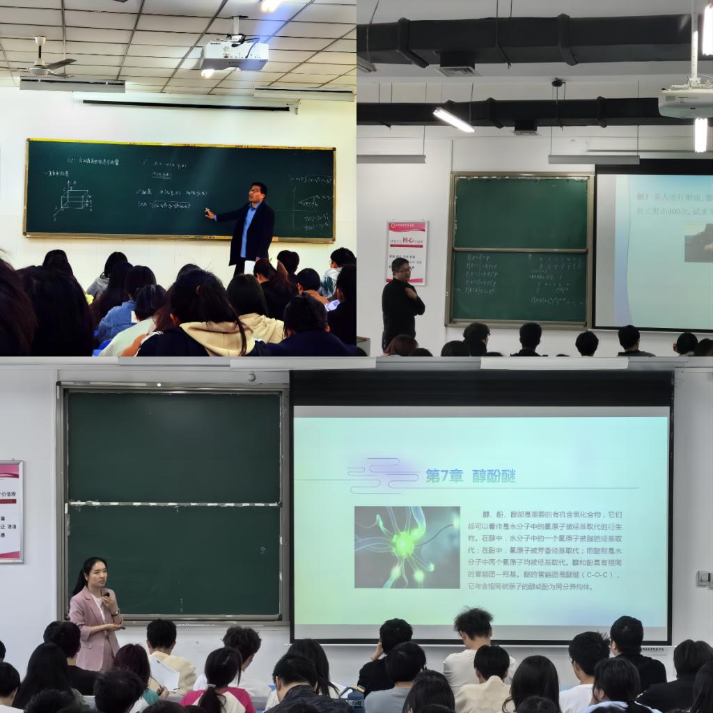 交流型观摩课同样精彩,3月25日,在龙子湖校区1号教学楼合404教室,高数教研室郭欢欢老师主讲的“平面方程”,通过复习数量积的计算公式,深入讲解了平面方程的点法式和一般式,注重引导学生进行归纳总结。4月17日,化学教研室的赵玉洁博士主讲的“酚类化合物”,从生活中的例子引入,强调了酚类化合物的重要性,培养了学生的辩证思维能力。4月19日,化学教研室的杨亚情老师主讲的“混合碱的组成及其含量的测定”,通过详细讲解实验原理和步骤,培养了学生的宏观辨识与微观探析能力,同时强调了实验安全和社会责任。