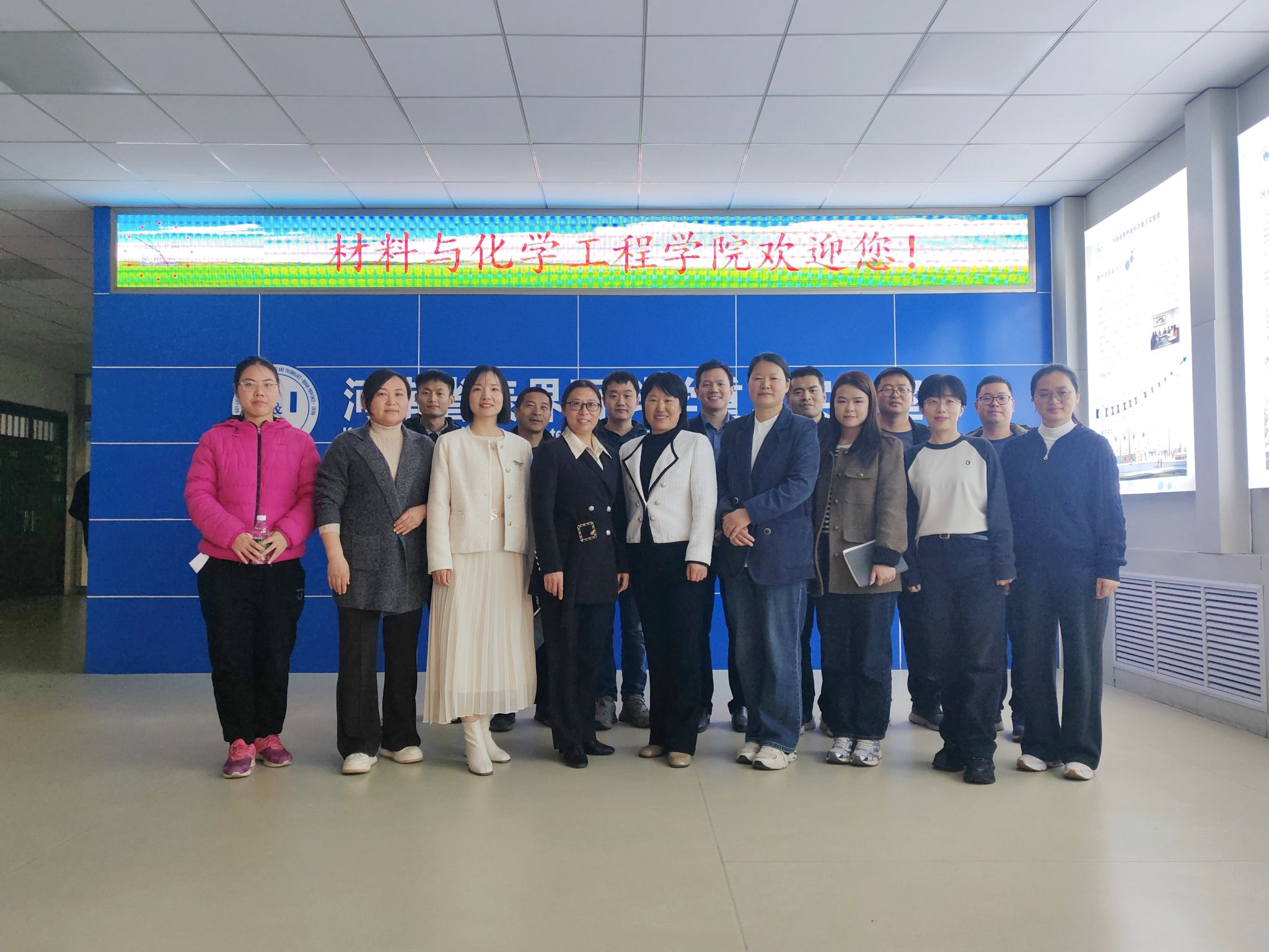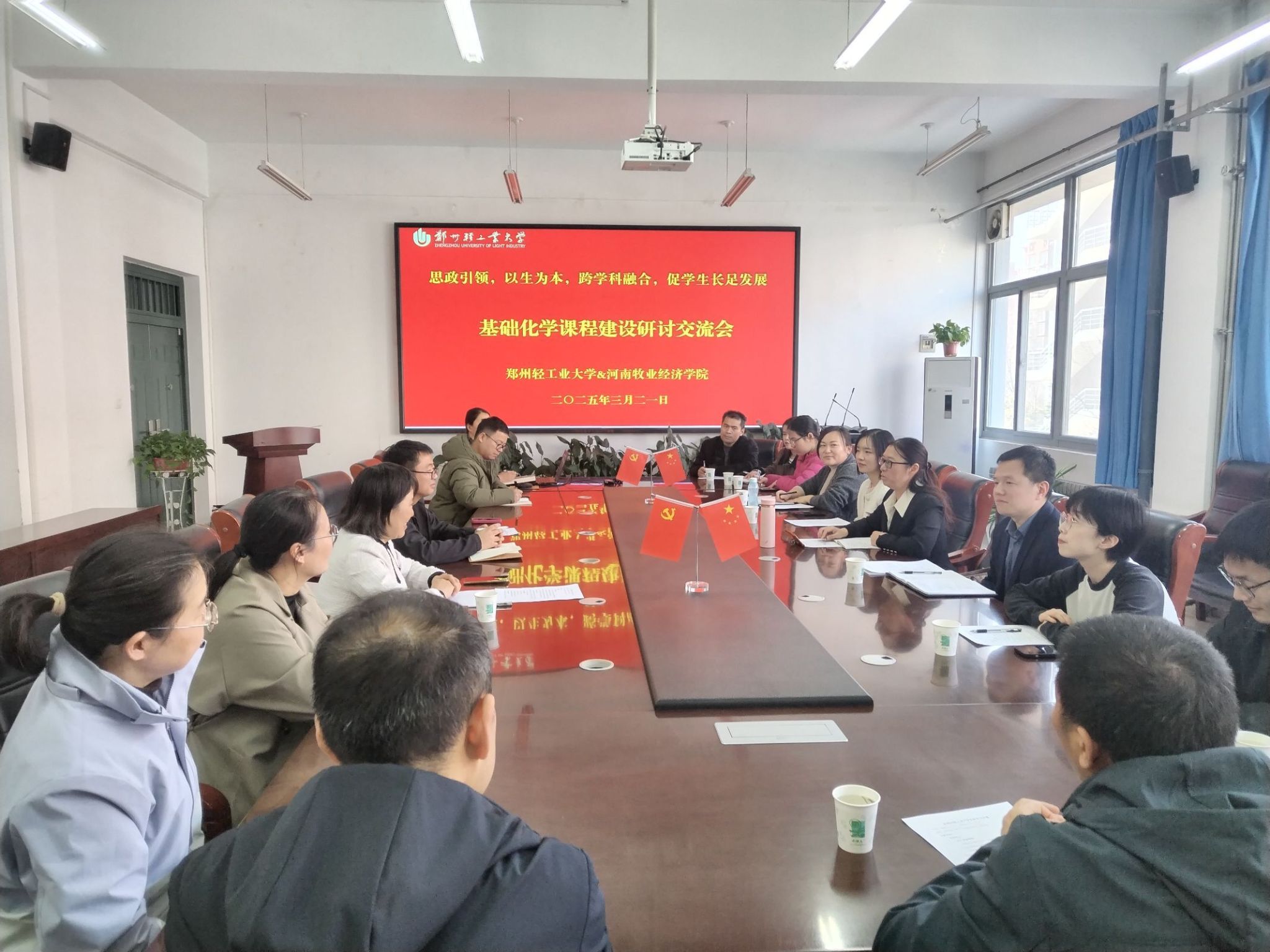 为了深化教育教学改革,加强校际交流,进一步提升实验课程建设与实验室管理水平,2025年3月21日下午,williamhill英国副主任张荷丽率化学教研室及实验中心教师代表一行,赴郑州轻工业大学材料与化学工程学院开展交流学习活动。郑州轻工业大学材料与化学工程学院化学系主任户敏、副主任刘炳坤和汪洋,无机及分析化学课程负责人蒋玲,有机化学课程负责人孙淑敏,实践教学中心副主任孔华杰参加交流,双方围绕实验教学改革、实验室管理及审核评估筹备中的重点事项进行了深入探讨,并实地参观了教学实验室。
