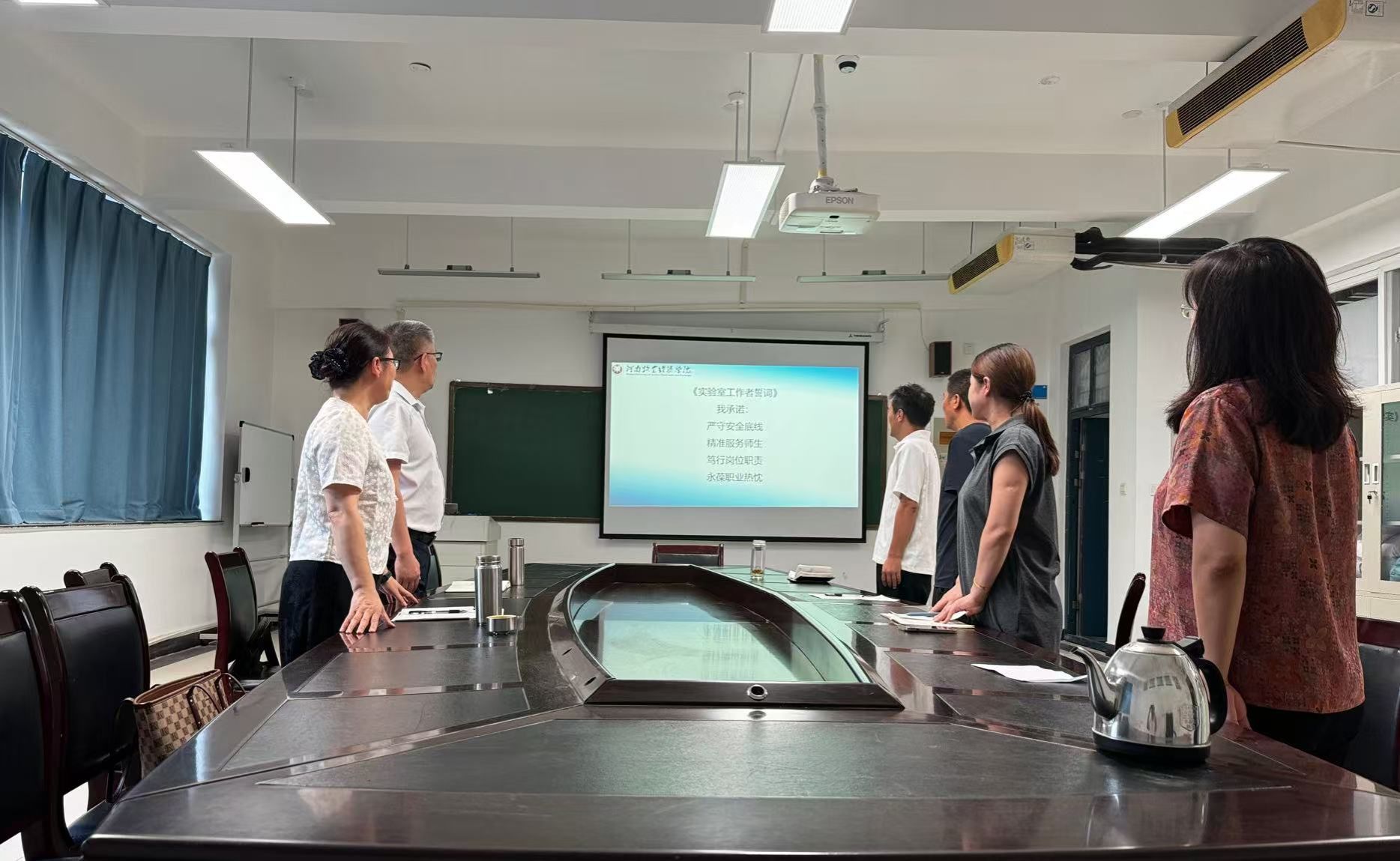 会议最后,全体参会人员共同宣读了《实验室工作者誓词》:严守安全底线,精准服务师生,笃行岗位职责,永葆职业热忱。