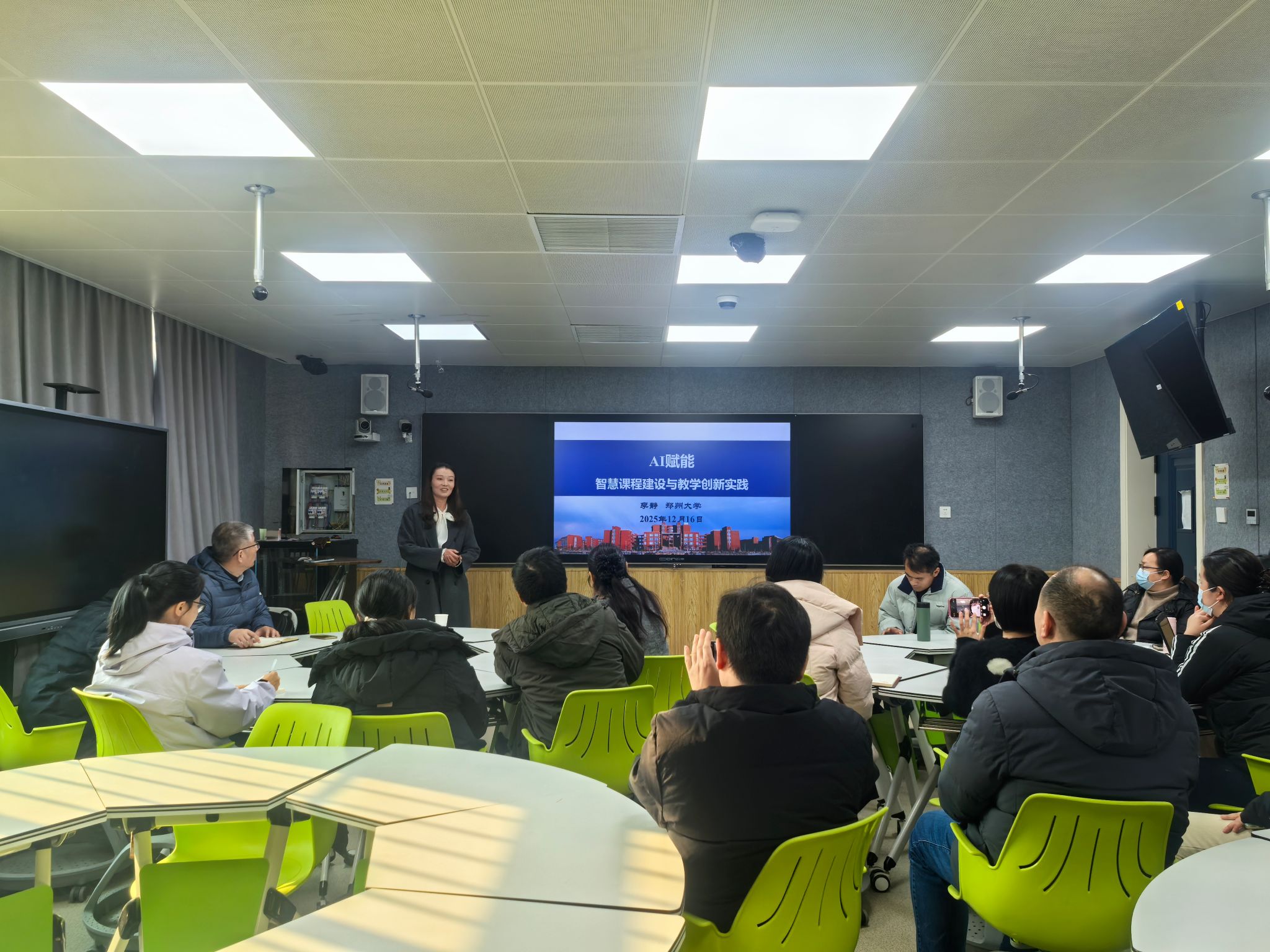 12月16日下午,williamhill英国与教师发展中心在英才校区A217教室举办《AI赋能智慧课程建设》专题讲座,特邀全国青教赛二等奖获得者、郑州大学李静副教授主讲,williamhill英国全体教师参加。
