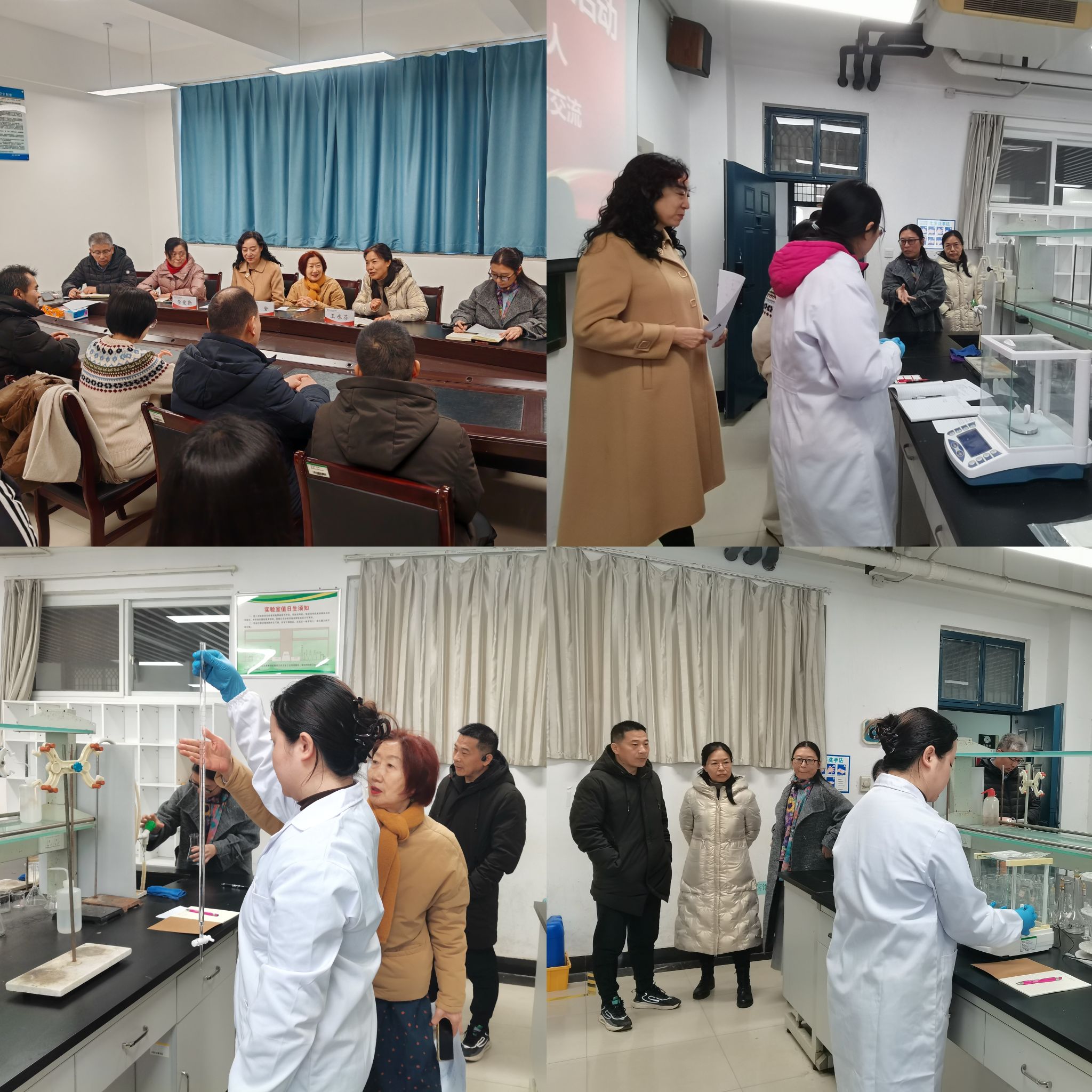 为促进经验传承与能力提升,活动创新构建“展示—指导—交流”三位一体机制,通过分组演示与专家点评相结合的方式,实现教学技能的精准提升。青年教师赵玉洁、李宜高、郭云分别围绕分析天平称量、移液管操作和滴定技术三大基础项目进行现场演示,边操作边讲解,充分展现了扎实的教学功底与规范的操作流程。老教师童岩、李爱勤就操作细节、安全规范及教学难点作出精准点评。活动现场同步建立“青年—资深教师结对机制”,为后续常态化指导提供制度保障。